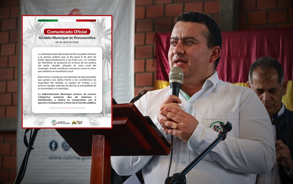 Una situación de orden público genera preocupación en el municipio de Roncesvalles, tras conocerse amenazas directas contra el alcalde Edisson Aguardo Grajales. El hecho se registró en la mañana del lunes 6 de abril, cuando un hombre sin identificar se presentó en la vivienda de los padres del mandatario, ubicada en zona rural, y emitió mensajes intimidatorios relacionados con su gestión.
