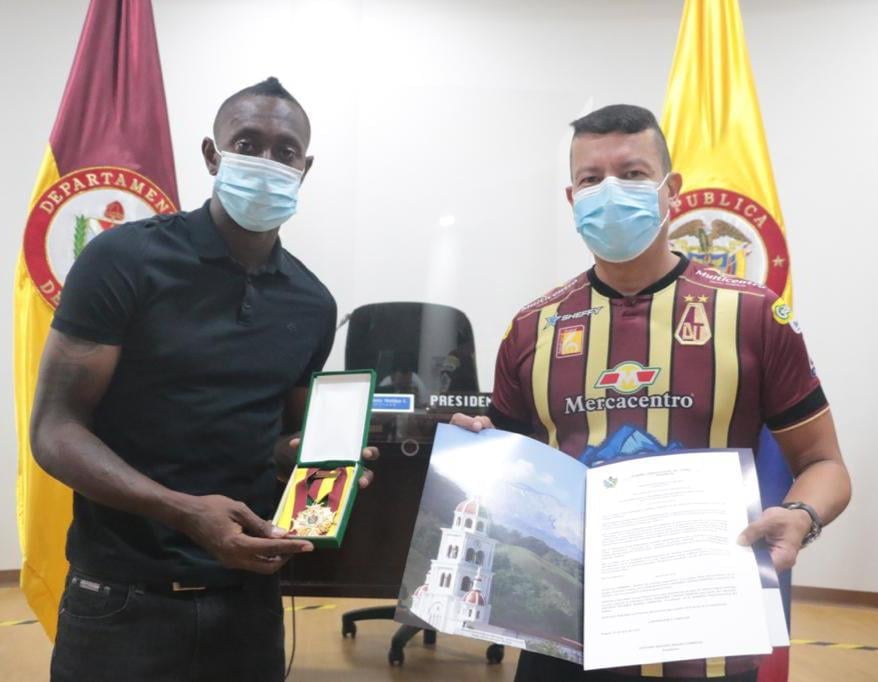 El presidente de la corporación, Giovanny Molina, exaltó a Juan Fernando Caicedo, futbolista del Deportes Tolima por ser artífice de ganar la tercera estrella del “Vinotinto y Oro”