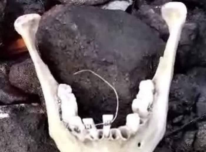 Se trataría de la mandíbula de un joven que todavía tendría Brackets en sus dientes