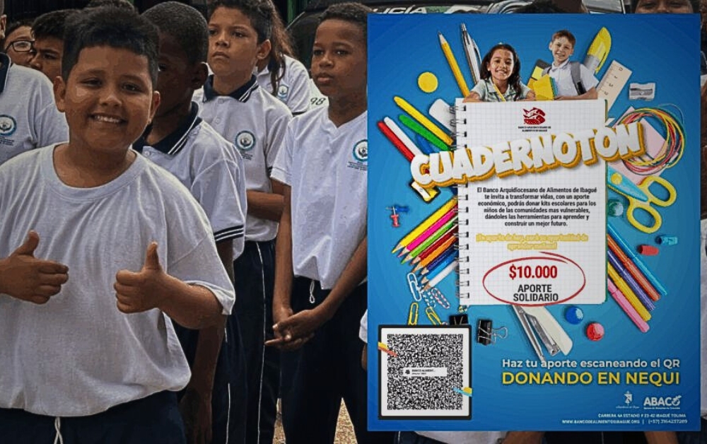 El Banco Arquidiocesano de Alimentos de Ibagué anunció el lanzamiento de la campaña «Cuadernotón», una estrategia solidaria orientada a la recolección de aportes económicos destinados a la entrega de útiles escolares a población infantil en condición de vulnerabilidad, como apoyo a su proceso educativo.