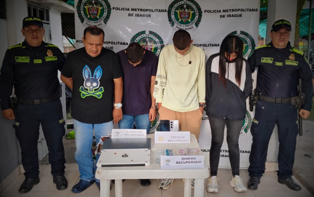 El procedimiento se llevó a cabo en horas de la madrugada en el barrio Tolima Grande, donde uniformados detuvieron un vehículo en el que se movilizaban los implicados. Durante el registro, las autoridades hallaron dos computadores portátiles, dos teléfonos celulares y dinero en efectivo, cuya procedencia no fue justificada en el momento.