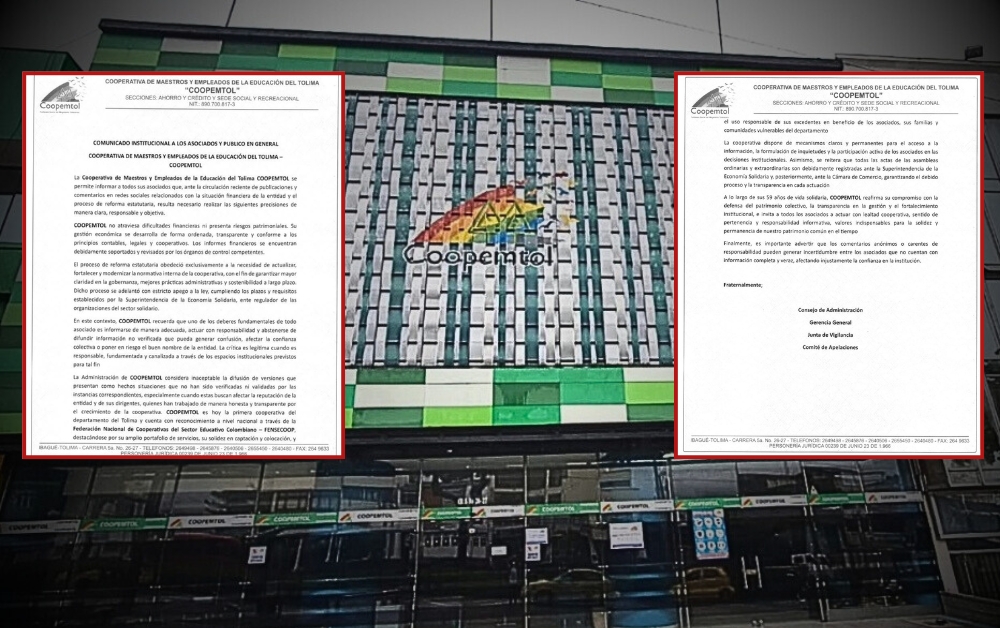 La Cooperativa de Maestros y Empleados de la Educación del Tolima – COOPEMTOL, emitió un comunicado oficial en respuesta a publicaciones y comentarios recientes en redes sociales que cuestionan su situación financiera y el proceso de reforma estatutaria.