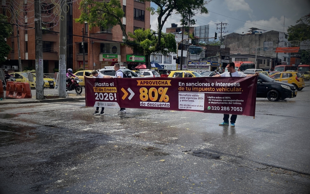 Este viernes al medio día, la Dirección de Rentas e Ingresos del Departamento del Tolima llevó a cabo una jornada informativa en el semáforo de la Calle 37 con Carrera Quinta, con el objetivo de dar a conocer los descuentos disponibles en el impuesto vehicular, como parte de la campaña ‘Ruta Cero Deudas Ponte al Día con el Tolima’. La actividad fue dirigida a los conductores y residentes de la ciudad, a quienes se les explicó cómo pueden beneficiarse de una reducción del 80% en intereses y sanciones al pagar el 100% del impuesto.