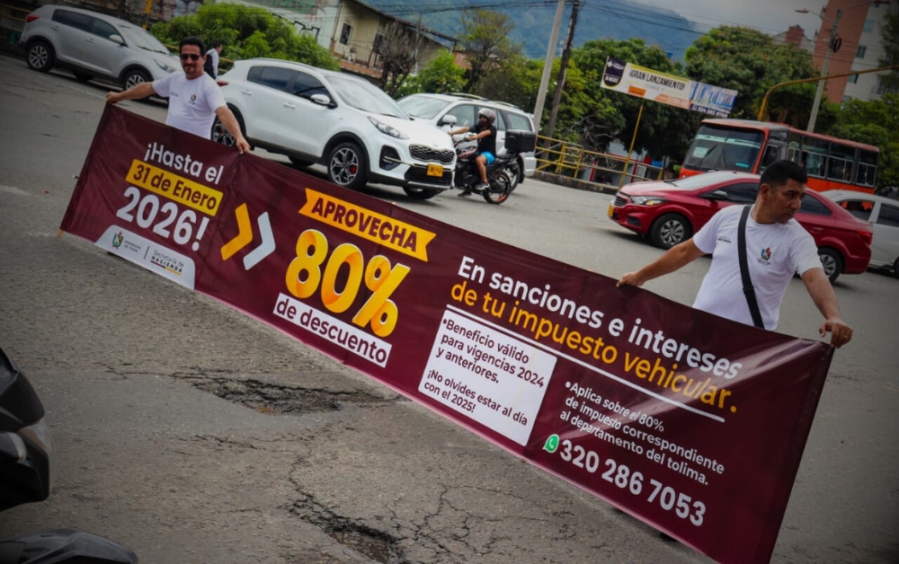 La Gobernación del Tolima, a través de la Secretaría de Hacienda, llevó la campaña ‘Ruta Cero Deudas: Ponte al día con el Tolima’ a uno de los puntos más concurridos de Ibagué, la avenida 60 con Quinta. El objetivo de la jornada fue informar a los ciudadanos sobre el 80% de descuento en sanciones e intereses del impuesto vehicular correspondiente a las vigencias 2024 y anteriores.