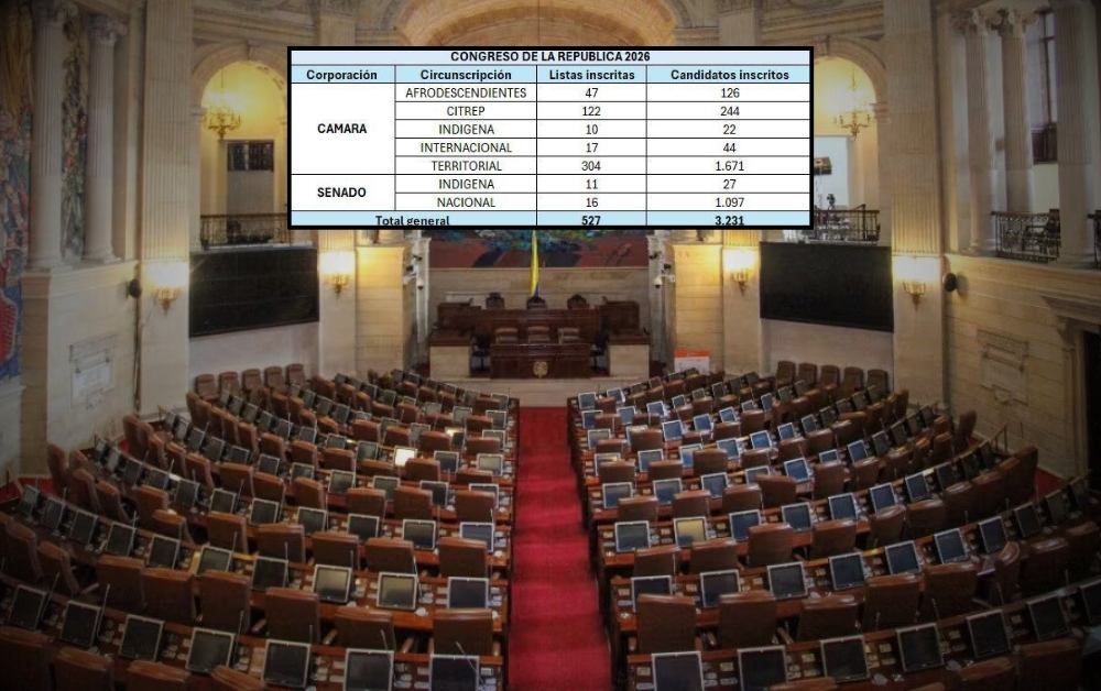 La Registraduría Nacional del Estado Civil informó que, tras finalizar el periodo de inscripción de candidatos para las elecciones del Congreso de la República de 2026, un total de 3.231 personas fueron postuladas, conformando 527 listas. De estos, 1.124 se postulan para el Senado de la República y 2.107 lo hacen para la Cámara de Representantes.