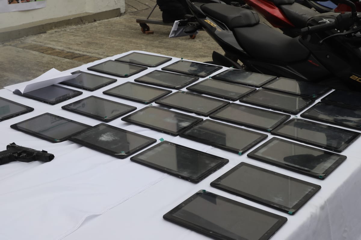 En medio de la ejecución también encontraron sorpresivamente las 27 tabletas que fueron saqueadas de la Institución Educativa Germán Pardo García perteneciente de la comuna dos de la ciudad.